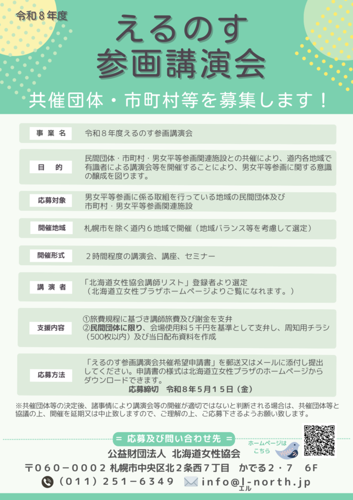 - 主催:民間団体及び市町村・男女平等参画関連施設(公益財団法人北海道女性協会との共催)