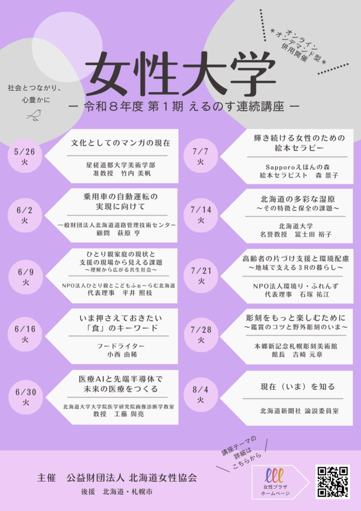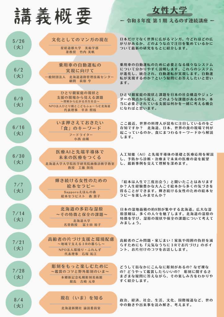 令和8年度 第1期 えるのす連続講座~女性大学~